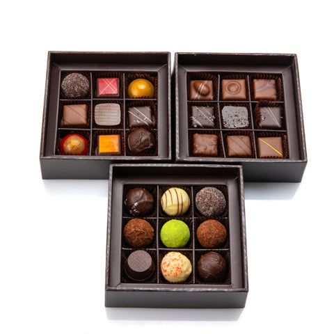 Signature Gift Box filled with 27 handmade chocolates and truffles. We hand select the freshest assortment from our daily production.