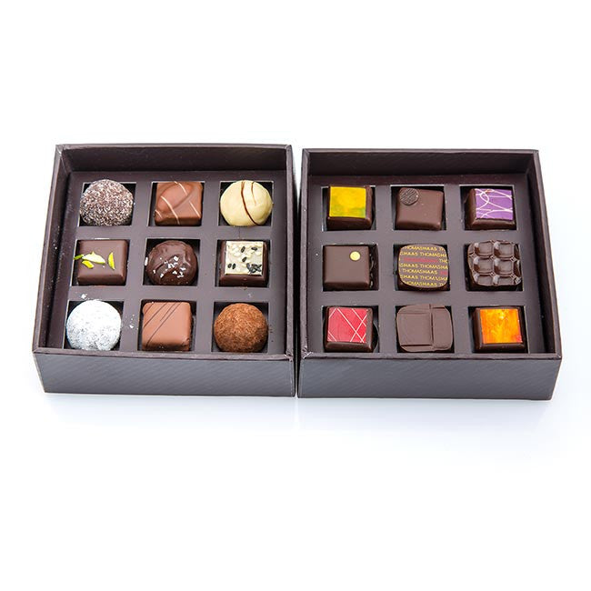 Filled with our handmade chocolates & truffles, our beautiful Signature Gift Boxes are designed to be tiered as high as you like them!